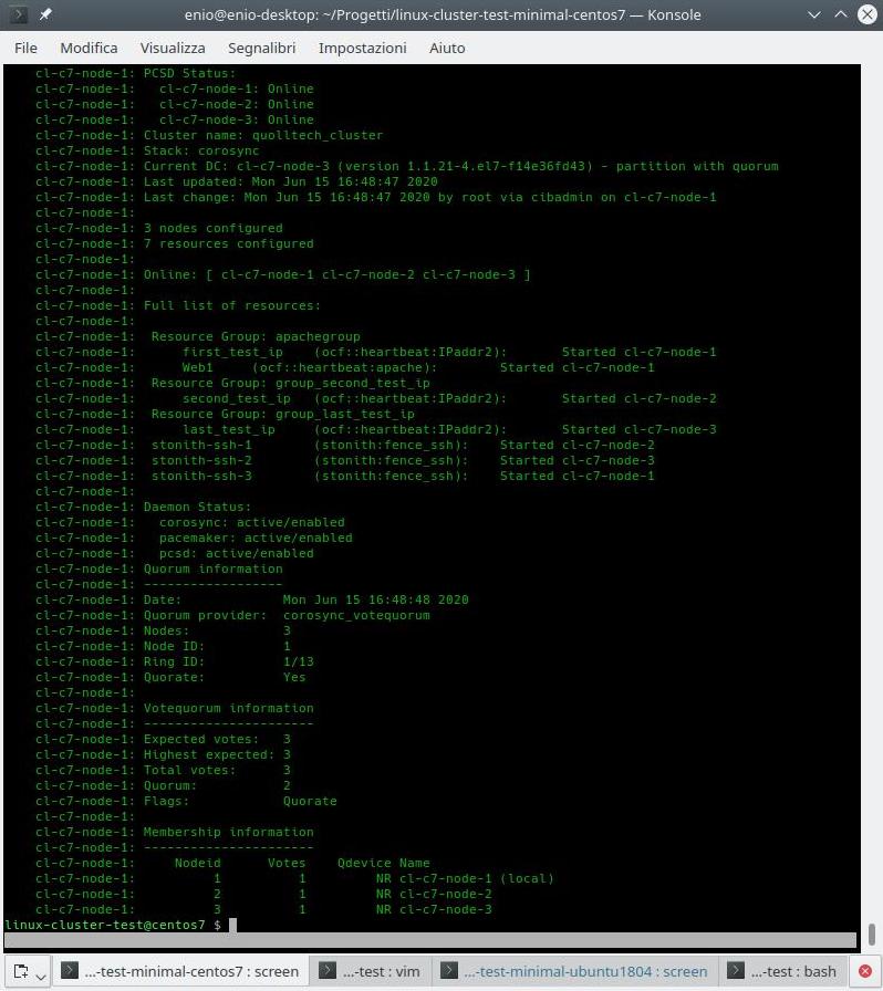 Tutto ciò l’ho già predisposto nel progetto “linux-cluster-test” su GitHub dove si può scaricare e testare velocemente tutte le possibilità.